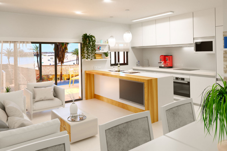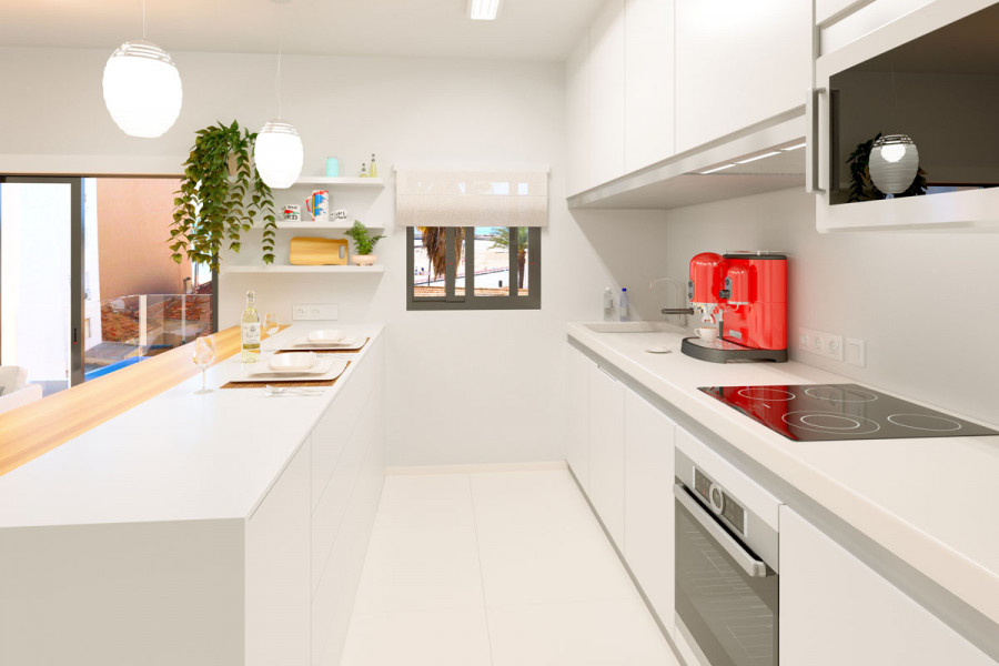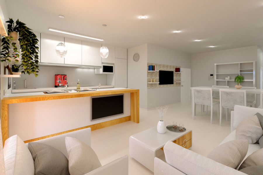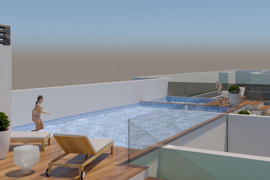 Scandinavia is a new development of two or three-bedroom apartments only 50 metres from El Cura beach, the most famous beach in Torrevieja. This property comprises of two double bedrooms (both with fitted wardrobes), two bathrooms (en-suite to the master bedroom), modern fully-fitted integrated kitchen (with breakfast bar) and open-plan living/dining room, leading to a 9m2 terrace. Penthouse apartments also have a private solarium. The development benefits from a residents-only rooftop swimming pool and communal leisure area with barbecue.