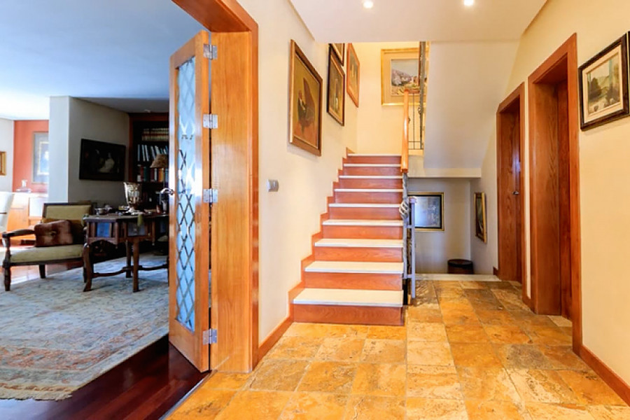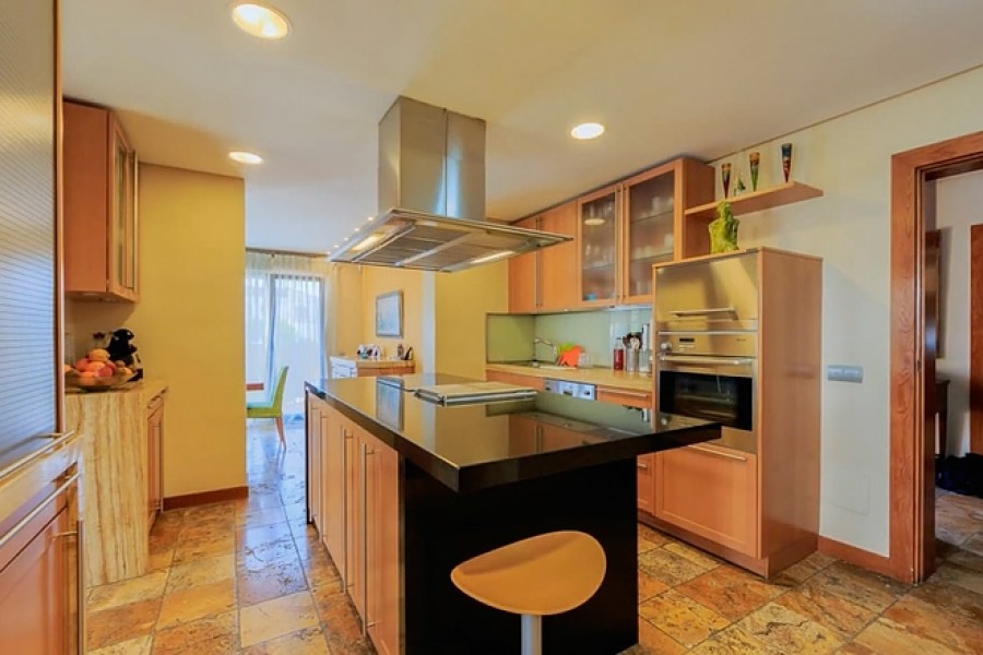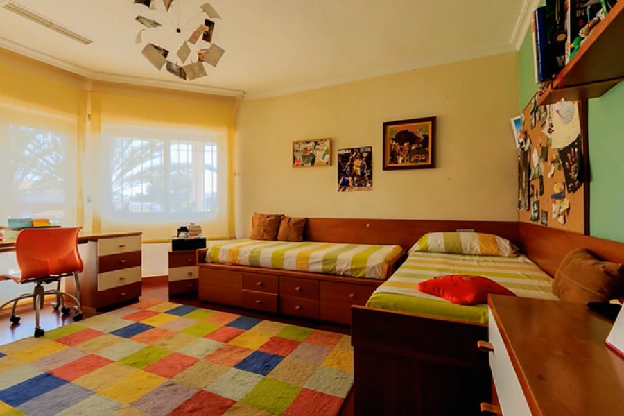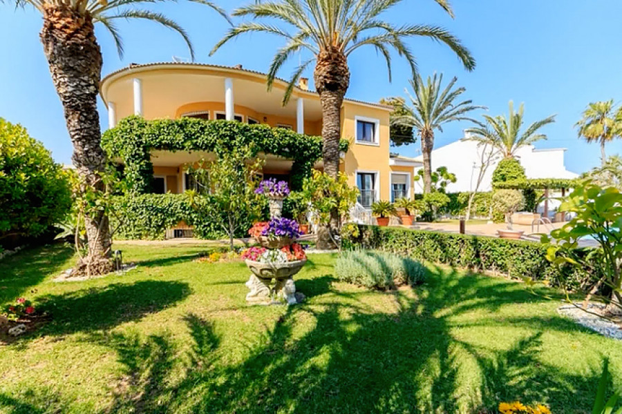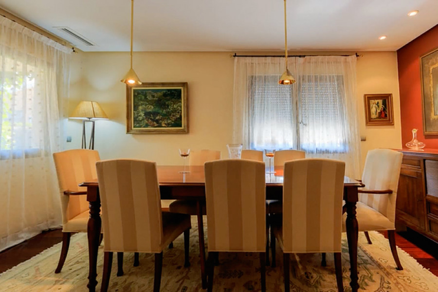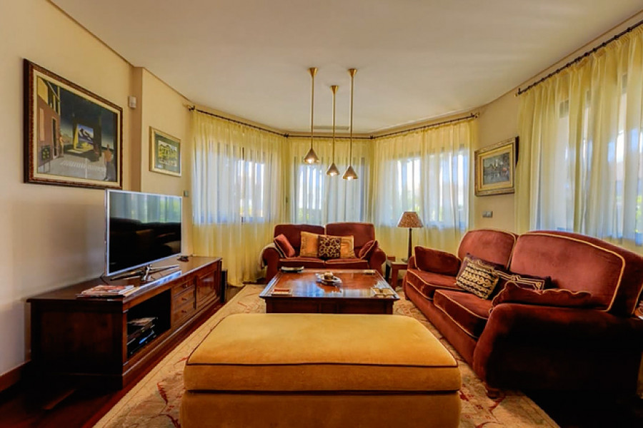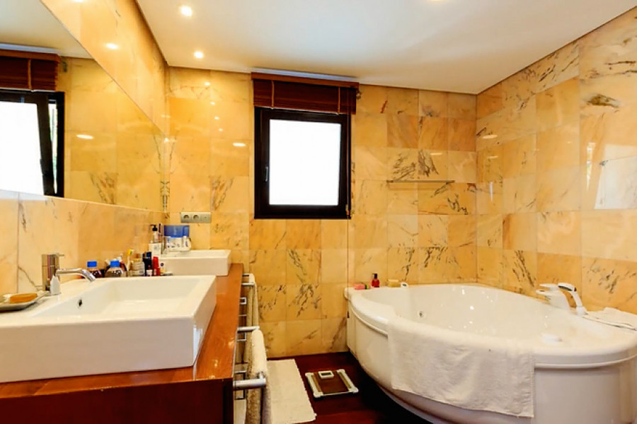 Casa Primavera is a very spacious detached villa, on a 1044m2 plot, in Torrevieja and within walking distance of the beach. The 400m2 luxuriously-furnished property comprises of three double bedrooms, dressing room to the master bedroom, two full bathrooms (one with corner bath-tub), separate guest toilet, den, dining room, large basement (currently being used as a home gym), spacious living room with library area and fully-fitted separate kitchen (with island), leading to the beautifully landscaped garden with covered outside dining area, private swimming pool, off-street parking and car port (for one car).